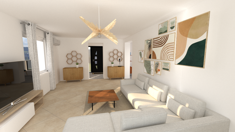 Le salon et la salle à manger ont été repensés pour offrir un espace convivial et accueillant. Les teintes neutres se marient avec des touches de couleur pour créer une ambiance chaleureuse. Le mobilier a été choisi avec soin pour allier confort et style, tandis que les éléments décoratifs apportent une touche personnelle et élégante.
