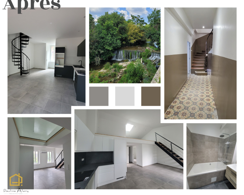 Au cœur d'un lieu bucolique, dans la charmante commune de Roquevaire, cinq appartements ont été rénovés avec passion et minutie, mettant en valeur l'optimisation des espaces, le choix minutieux des matériaux et l'utilisation astucieuse de la hauteur sous plafond au dernier étage pour y installer de magnifiques mezzanines.